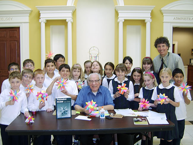 Fr. Magnus Wenninger is a Benedictine monk who has devoted his life to teaching mathematics, making geometric models, and sharing his knowledge about polyhedra and model-making through wonderful presentations and books accessible to anyone who wants to see and feel the beauty of symmetric polyhedra. See References for his books.