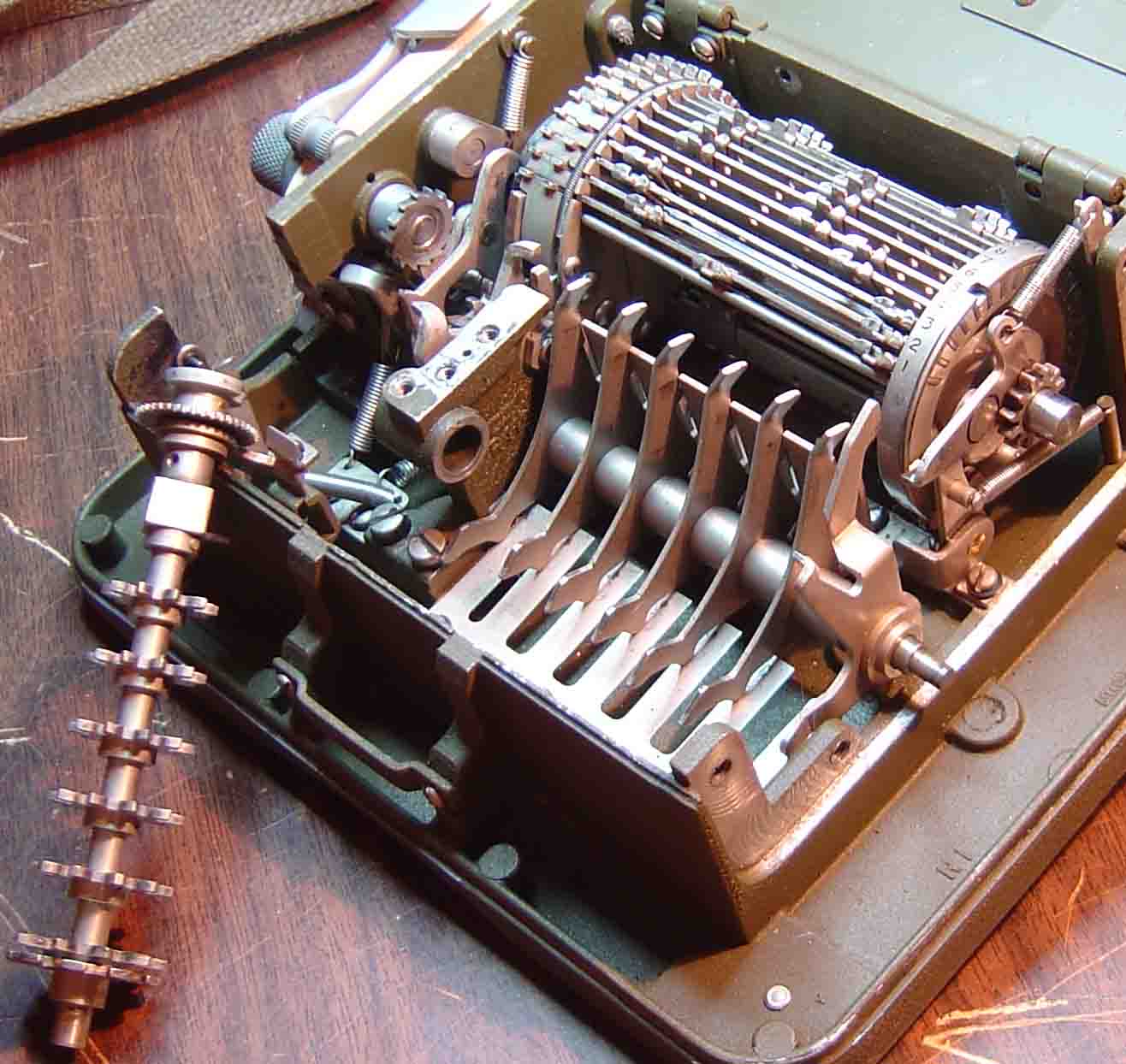 The M-209 Encryption Machine was used by the US military in World War II and the Korean War. When used by the Navy, it was designated as the CSP-1500. The M-209 was favored by the military as it was small and lightweight, ideal for a mobile force.