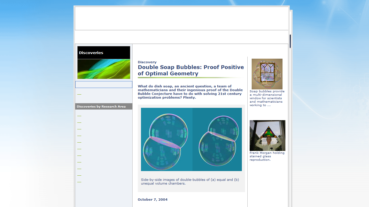 This article from the National Science Foundation describes Frank Morgan’s work on the Double Bubble conjecture.