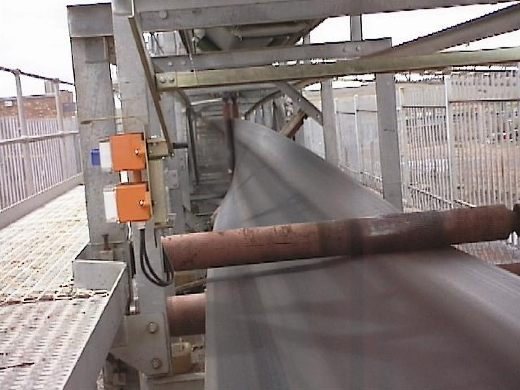 To the right we see a guided turnover system in the lower deck of an industrial conveyor.