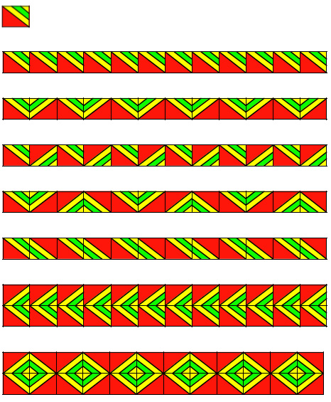 Challenge: Use the triangle or the step shapes to make a water frieze pattern in which the background and the printed pattern are exactly the same pattern.