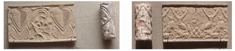 Frieze patterns have been found in almost every culture and period of history. Decorative art seems to be a human need, a way to express identity or beliefs, and to make plain functional items beautiful. Some of the oldest rollers with carved patterns that could make frieze patterns (seals) in wet clay date to the period between 3100 BCE and 2900 BCE — 5,000 years ago!