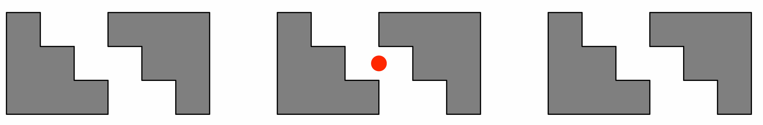 You can move a frieze pattern by sliding it and then immediately reflecting it across the center line of the strip—this combined motion is called a glide-reflection. If, after this combined motion, the pattern looks like it hasn’t moved, we say the pattern has glide-reflection symmetry. The footprint pattern made by someone who is walking along a straight path will have glide-reflection symmetry.