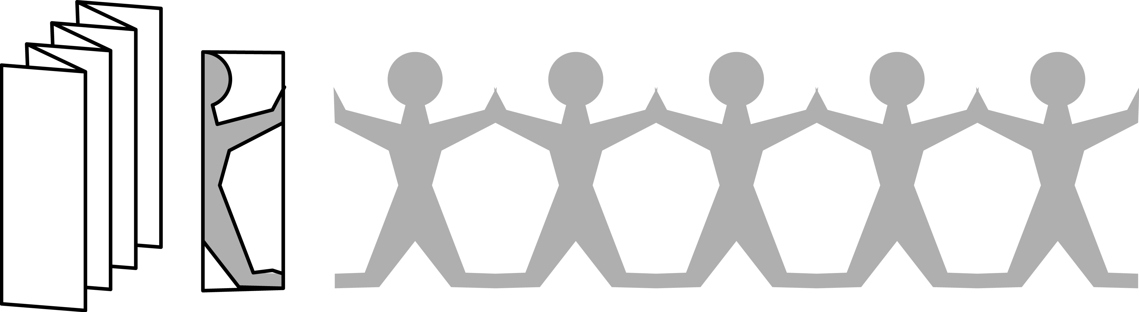 With paper and scissors you can produce a frieze pattern having vertical reflection symmetry. Take a long strip of paper and accordion-fold it so the folds are perpendicular to the edges of the strip. Then cut out a half-shape, taking care to leave some parts of the folds uncut. The fold lines act as mirror lines. “Paper doll” frieze patterns can be created this way.